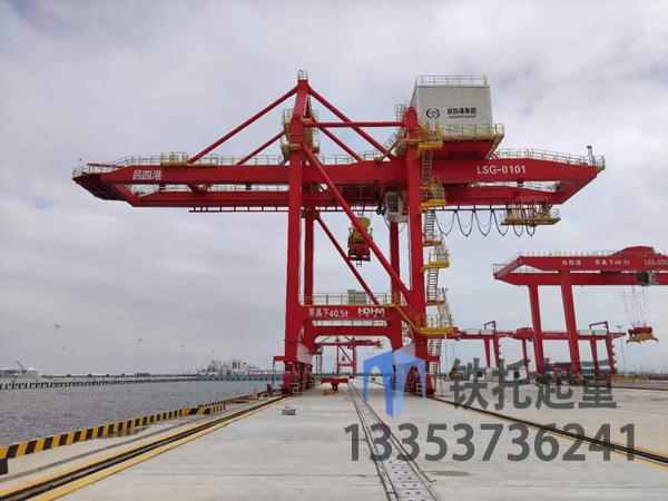 江蘇鎮(zhèn)江岸邊橋式起重機(jī)生產(chǎn)廠家岸邊集裝箱橋式起重機(jī)主要由前后兩片門框和拉桿組成的門架,沿著與岸線平行的軌道行走,橋架支承在門架上,行走小車沿著橋架上的軌道吊運(yùn)集裝箱,進(jìn)行裝船和卸船作業(yè)。為了便于船舶靠離碼頭,橋架伸出碼頭前沿的部分可以俯仰。起重機(jī)裝有集裝箱專用吊具。對(duì)于高速型岸邊集裝箱起重機(jī),還裝有吊具減搖裝置。